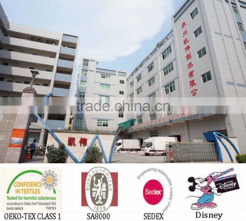 Quanzhou Kaiwei Garments Co.,Ltd is a manufacturer of underwears and children's clothing with well-equipped sewing equipment and strong technical force.We are certificated by OEKO-TEX,SA8000,SEDEX AND DISNEY FAMA.