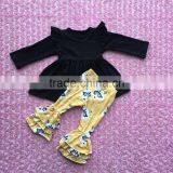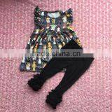 FLF-863 Black Baby Ruffle Dress Matched Fox Design Ruffle Pants Kids Toddler Clothing Baby Clothes Clothing Set
