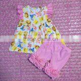 2017 Wholsale Boutique Clothing Baby Beauty and Beast Pattern Flutter Dress With Red Shorts Outfit 2017 Summer Outfit