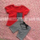 FLF-865 Black and White Stripe Straight Shorts Matched Bowknot Red Baby Girls Short Sleeves Clothes One Pocket Children Clothing