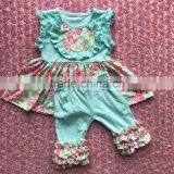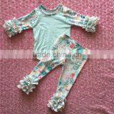 FLF-862 Floral Icing Leggings Matched Baby Ruffle Raglan Shirts Kids Cotton Frocks Design Princess Pattem Clothing Set