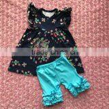 Childrens Clothing Wholesale Boutique Clothing Set Blue Tank Flower Bib Top With Shorts Set