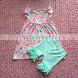FLF-862 Floral Icing Leggings Matched Baby Ruffle Raglan Shirts Kids Cotton Frocks Design Princess Pattem Clothing Set