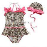 Hot Sale Three-piece Swimsuit Baby Leopard Swimwear Sun Hat Child Swimwear Twinset Bikini Swimwear With Cap Girl Swimsuit