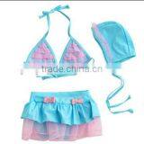 High Quality Wholesale Three-piece Swimsuit Baby Swimwear Sun Hat Child Swimwear Twinset Bikini Sweet Heart Swimwear