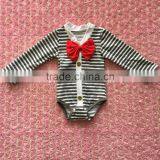 2016 Hot Sale Baby 100% Cotton Dark Grey Stripe With Bow Romper Baby Boy Romper