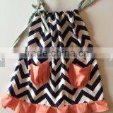 2015 Hot Sale Baby Chevron Ruffle Dress Girl Summer Pillowcase Dress Wholesale Baby Pocket Dress