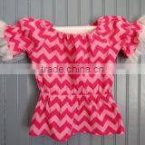Peasant Style Girls Top Wholesale Baby Valentine Pink Chevron Tunic With White Tulle Trim for Girls