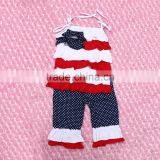 Boutique Wholesale Children's 4th of July Outfit Baby Girls Navy Blue Bib Tank Top With Red Stripe Double Ruffle Shorts Sets