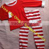 Hot Sale Children's Christmas Clothing Boutique Toddler Girls Red Long Sleeves Shirt With Stripe Ruffled Pant Outfit Sets