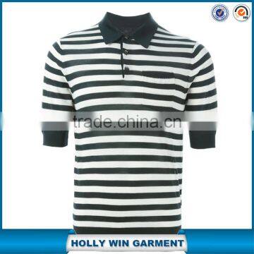 | Item Name | Black and white stripe fine knit golf polo shirt for male |
