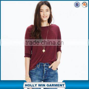 Claret Modern Linen Three Quarter Sleeve Women t Shirt