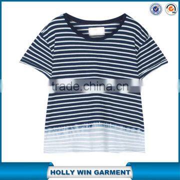 The Freshman Dip-dyed Light-blue and White Wholesale Striped T-shirt