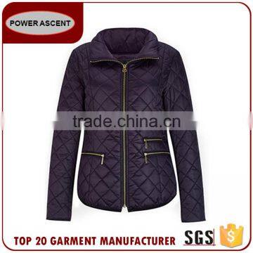 Good Quality Women Stand Collar Diamond Quilted Casual Wearing Warm Padding Jacket For Sale