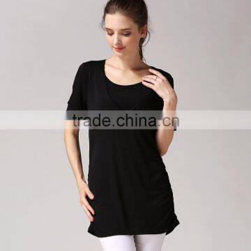 Thin Short Sleeve Maternity Clothes Solid Breastfeeding Clothes Loose Hem Nursing T-shirts