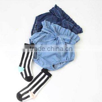 Blue denim bloomer baby diaper cover size for newborn to 24 month