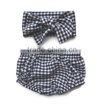 Kids Cotton Hot Boy Shorts Bloomers Baby Black White Gingham Bloomer Shorts With Headwrap Set Outfits
