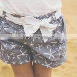 Grey Baby Shorts Printed Cotton Baby Clothes Children Clothing Match White Belt China Wholesale