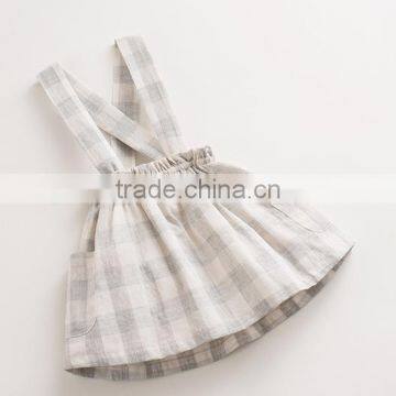 Lovely Child Girl Dresses Plaid Suspender Skirt Cotton Skirt Side Pockets Dress
