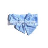 Sky Blue Gingham Headband With Big Bow Baby Plaid Hair Headband