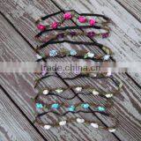 Pure Color Braid Elastic Headband Baby Girls Flower Shape Hairband Newborn Infant Shiny Beads Hair Accessories