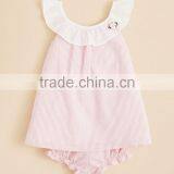 Latest Style Baby Set Clothes Outfit Baby Plain Color Seersucker With White Collar Top Bloomer Children's Boutique Outfits