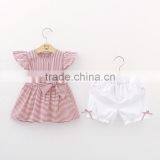 Child 2017 Summer New Korean Fashion Outfit 2pcs Set Baby Flutter Sleeve Dress White Shorts Cotton Clothing for Children