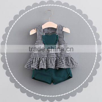 Baby Girl Clothes Summer Outfit Plaid Sleeveless Top Dark Green Shorts Plus Size Children Wear Oem Service