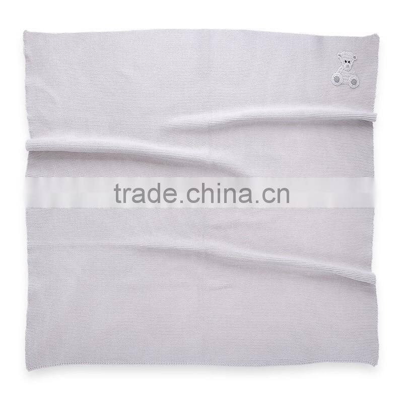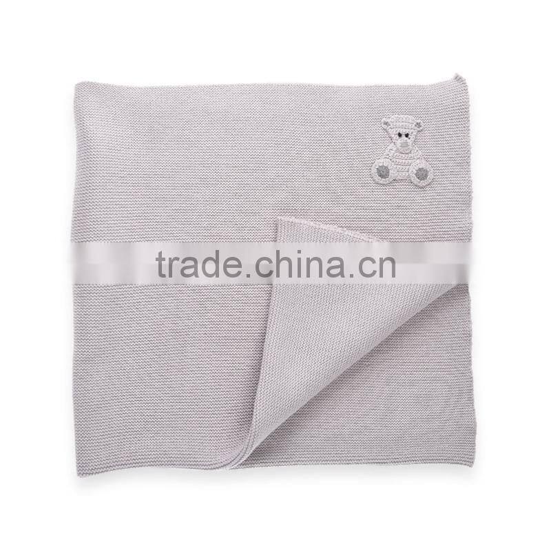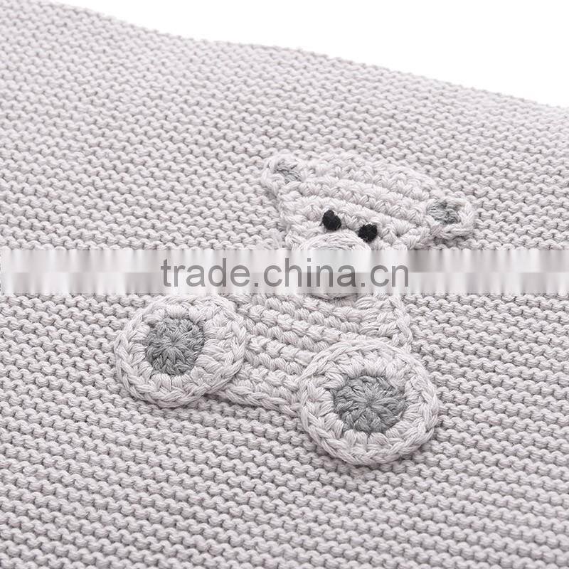 Dongguan, Guangdong, ChinaGrey Organic Cotton Baby Blanket With Crochet Little Bear
