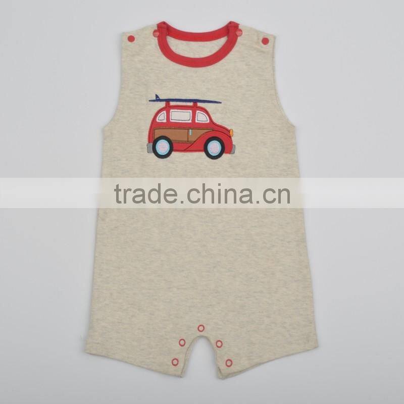 Summer Baby Boy Collar Short Sleeve Clothes Little Car Design Plain Baby Rompers