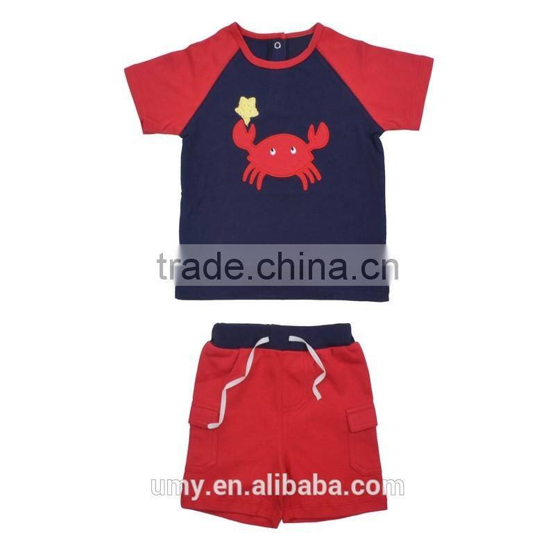 Website: http://umy.en.china.cn/Summer Organic 100% Cotton Cartoon Applique Short T-shirt Boy Clothes Sets