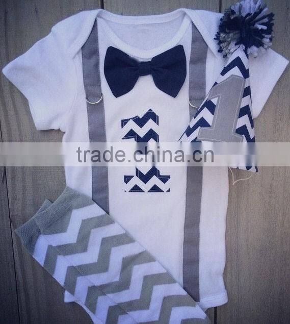 Baby Boy 1st Birthday Outfit Navy And Gray Chevron Navy Bow Tie Gray Suspenders Party Hat Leg Warmers