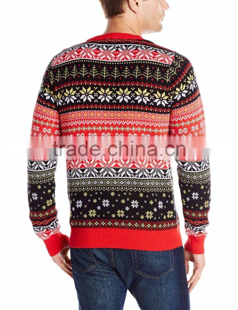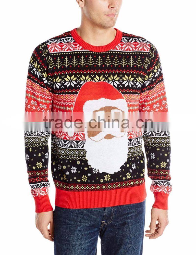 Big Santa Face Front Pattern Ribbed Trim Men Pullover Christmas Sweater