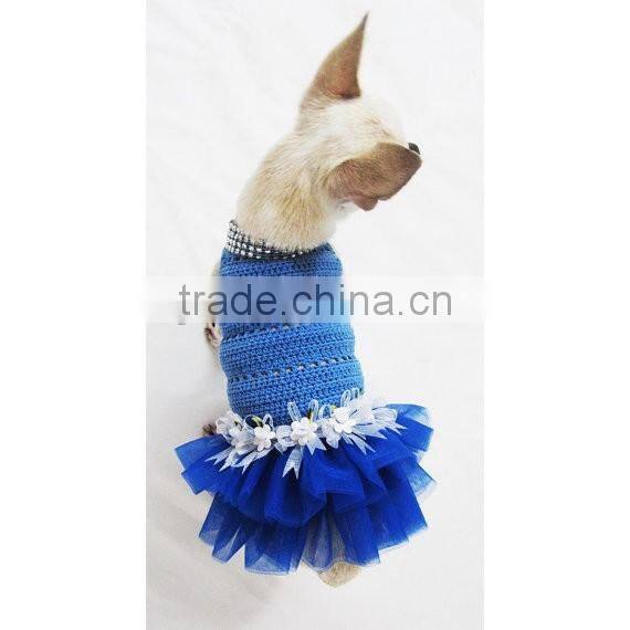 Blue Dog Tutu Dress Crochet Bling-bling Handmade Crocheted Wedding Designer Chihuahua Clothes Cat Costume