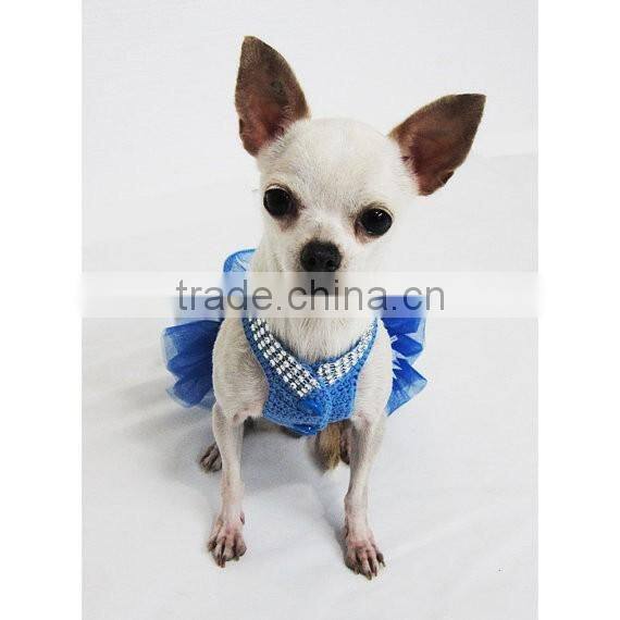 Blue Dog Tutu Dress Crochet Bling Bling Handmade Crocheted Wedding Designer Chihuahua Clothes Cat Costume
