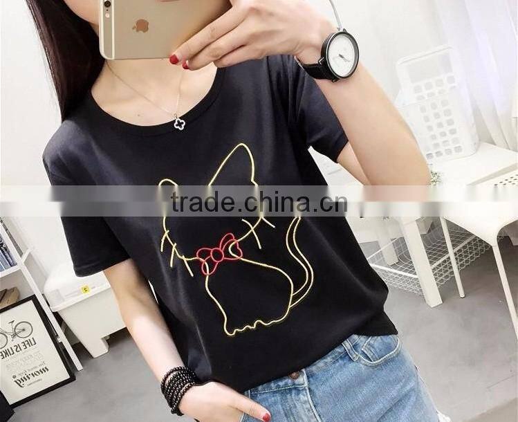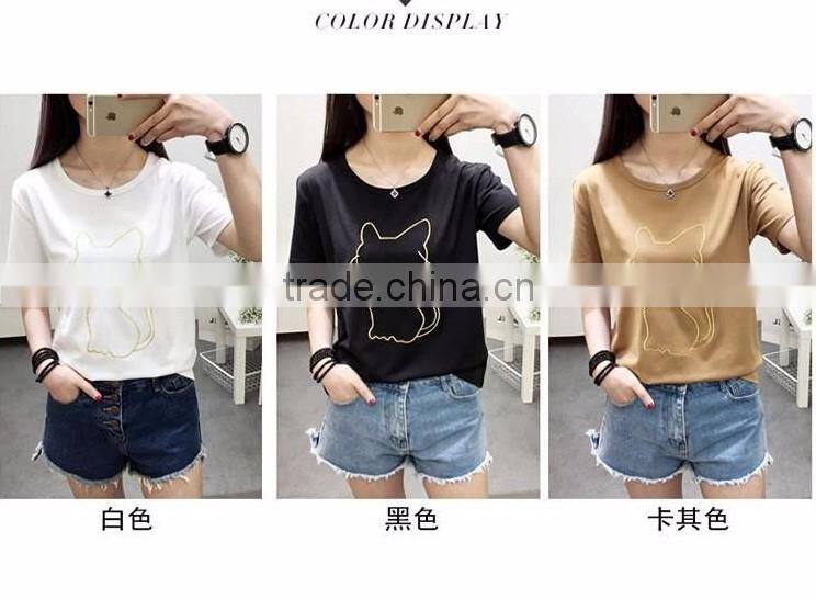 2017Wholesale OEM Eco-Friendly Unique Design Amazing Quality Hot-selling Best Choice Short Sleeve Casual Lady T-shirt TC(70/30)