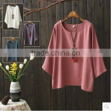 The cotton and linen dress loose comfortable breathable round collar joker T-shirt