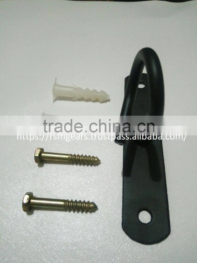 This hook is made from high quality metal which has been specially shaped and made for punch bags. The product has been powder coated to give it extra life and make it weather proof and suitable for all environments. It can be affixed into wooden beams or drill fixed into other suitable places. The hook can hold up to 100 kg, it comes with appropriate screws and plugs.