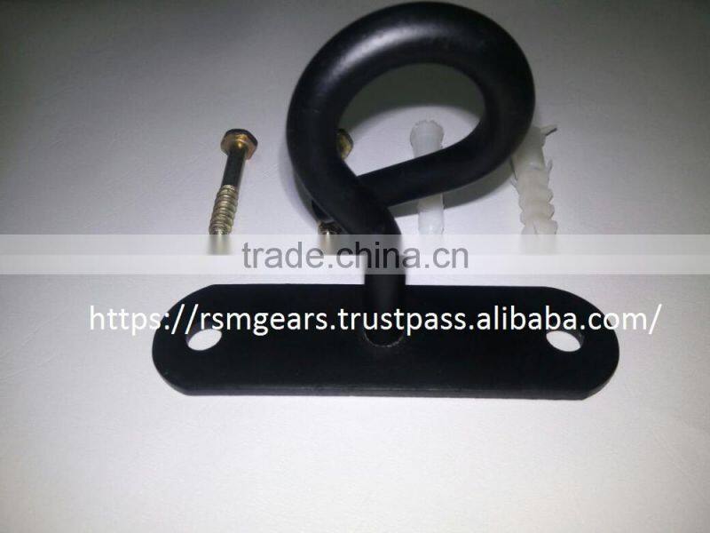 This hook is made from high quality metal which has been specially shaped and made for punch bags. The product has been powder coated to give it extra life and make it weather proof and suitable for all environments. It can be affixed into wooden beams or drill fixed into other suitable places. The hook can hold up to 100 kg, it comes with appropriate screws and plugs.