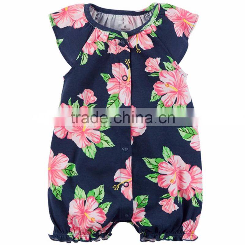 Wholesale Baby Basic Bodysuit Cotton Flower Print Sets Girls Sleeveless Children Romper