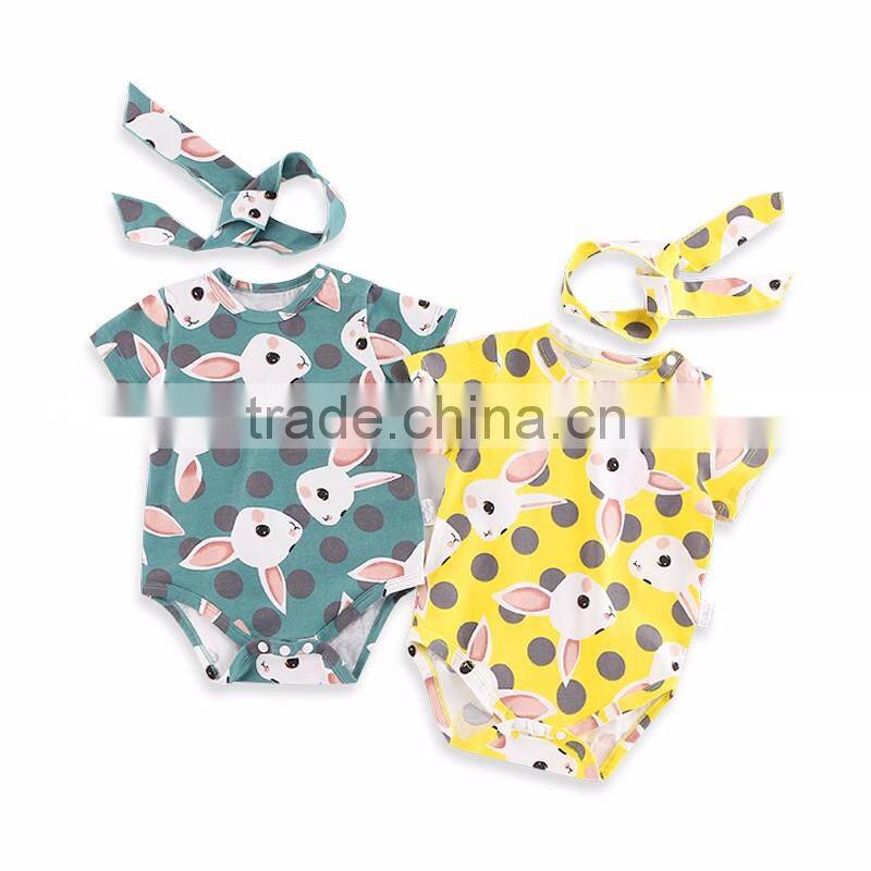 Newborn Lovely Headbands Green Yellow Rabbit Outfit Set Animal Baby Romper Unisex