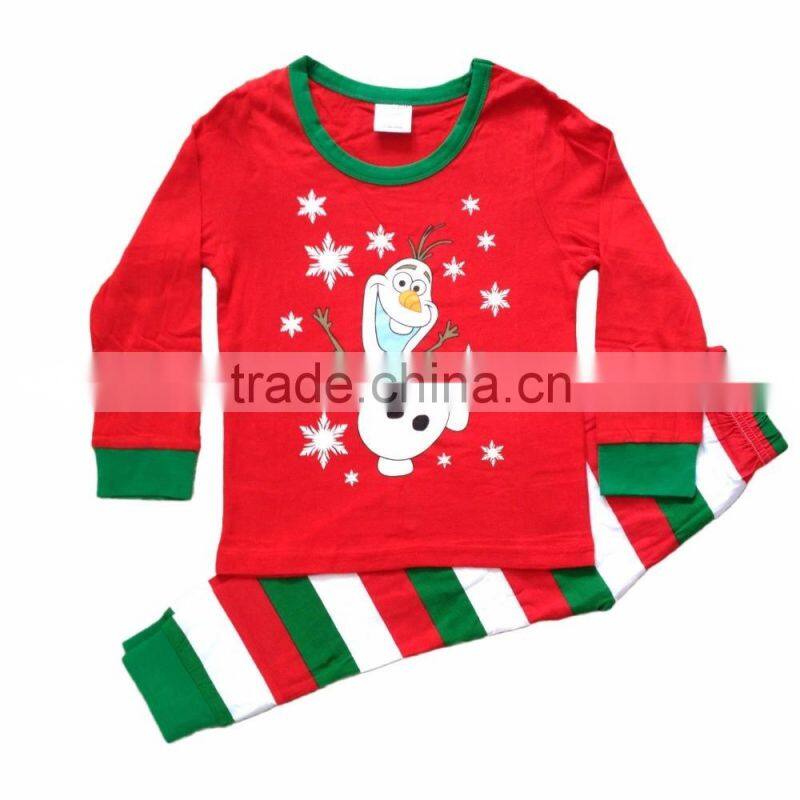 Custom Night Wear Sets Cartoon Kids Christmas Pajamas Snow Man Baby Girl Clothes