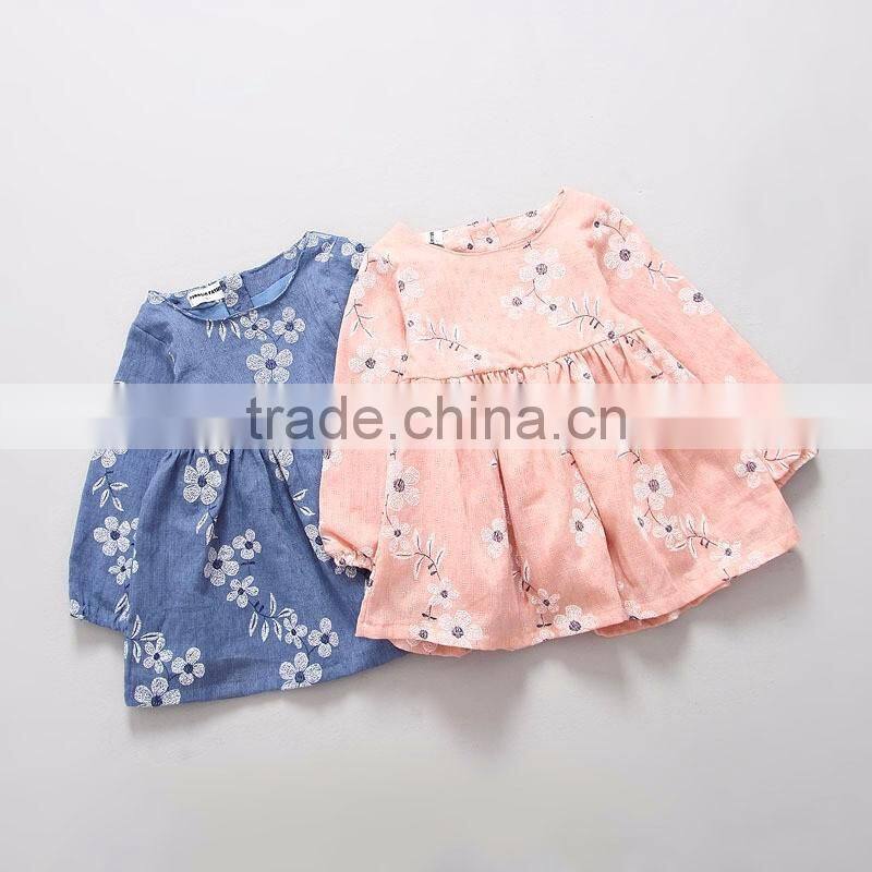 Autumn Toddler Baby Girl Cotton Linen Dresses Princess Costume Girls Clothes Floral Printed Children Dress