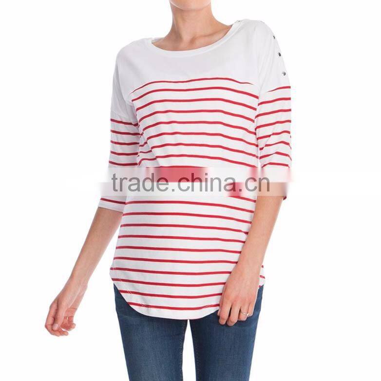 Custom High Quaity lPregnant Dresses Striped Cotton Maternity & Nursing Top