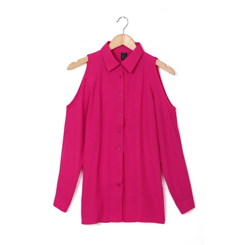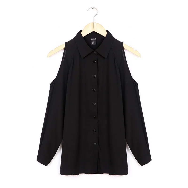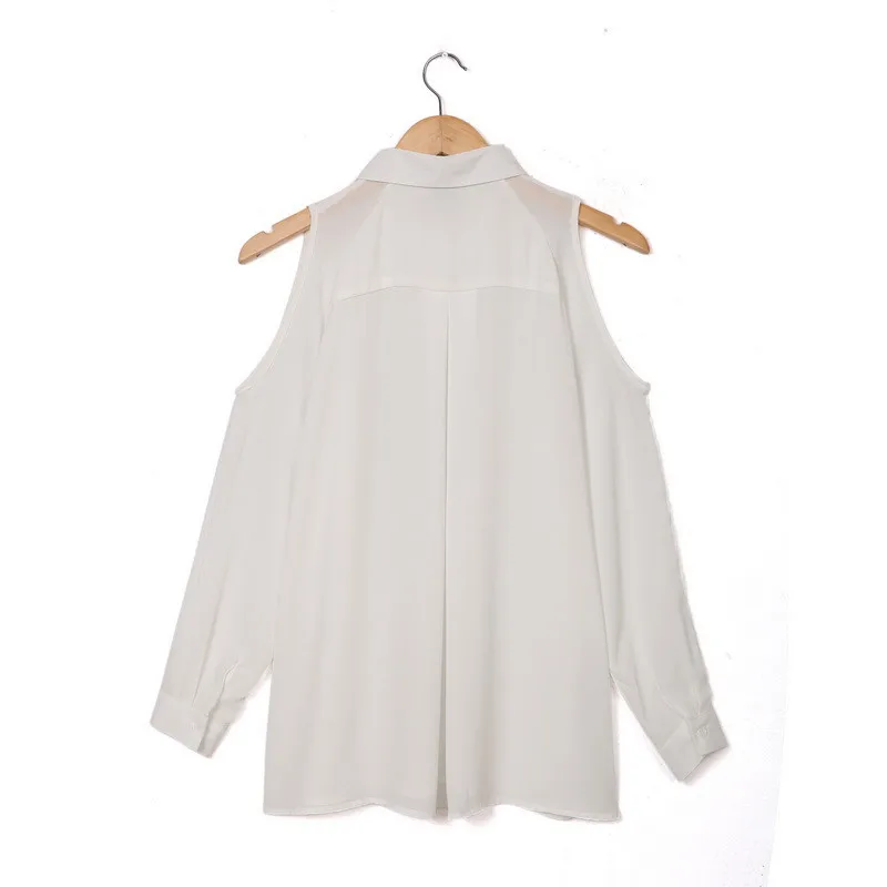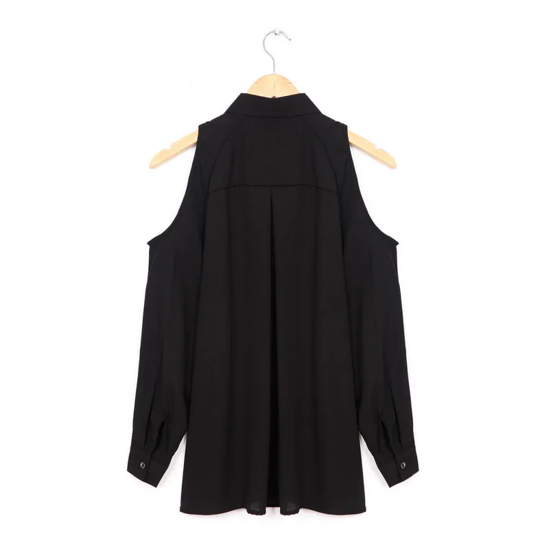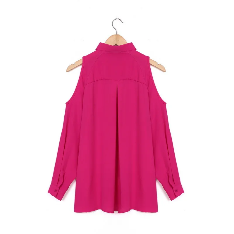 Women Off Shoulder Long Shirts Sexy Chiffon Tops Turn Down Collar Blouse Long Sleeve Casual Plus Size Blouse