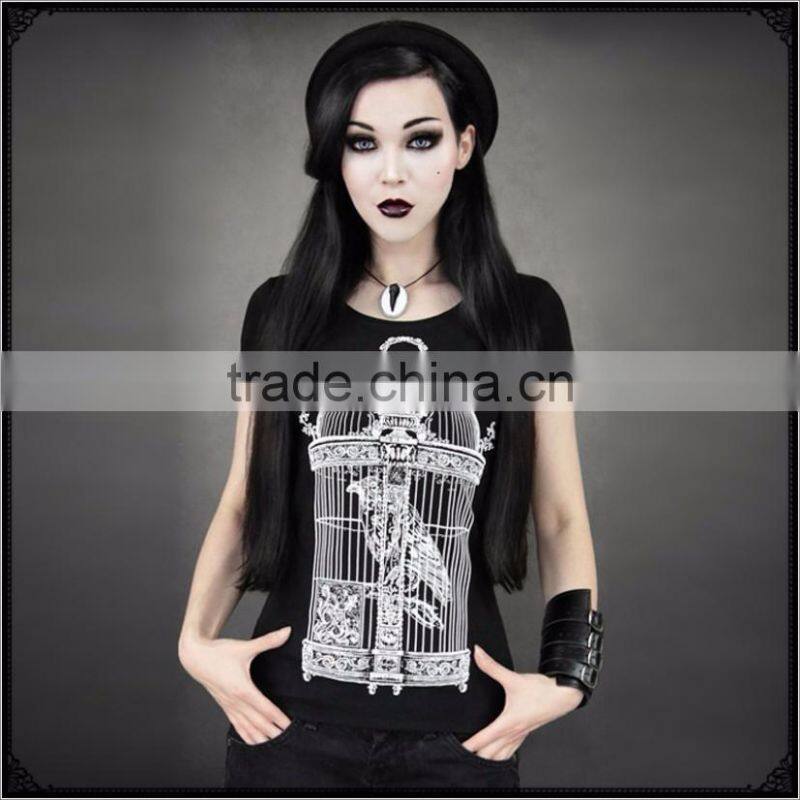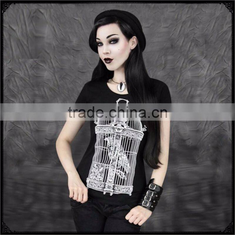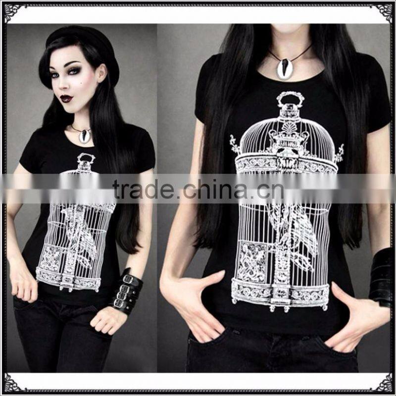 Women Black Party Dress Short Cage Printing Slim Fit Femme Tee Shirt