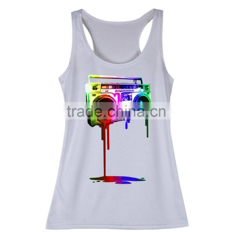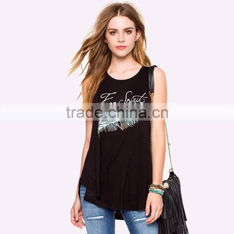 2016 Wholesale Fashion New Style Sleeveless Black Printing Tank Top for Ladies