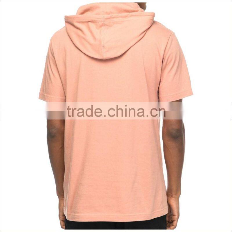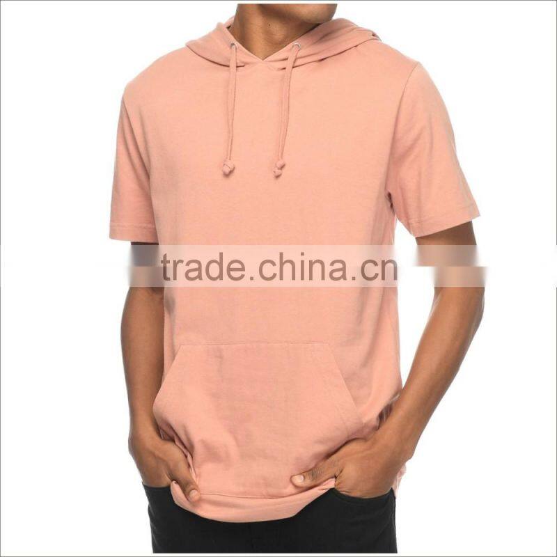 Guangzhou OEM New Fshion Incarnadine Color Men's Slant Pocket Short Sleeve Hoodie
