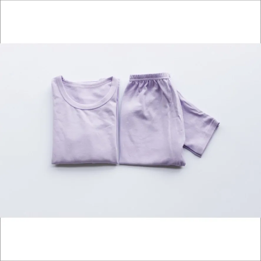 2017 New Models Kids Pajamas Set Custom Logo Night Shirts In Plain Colour