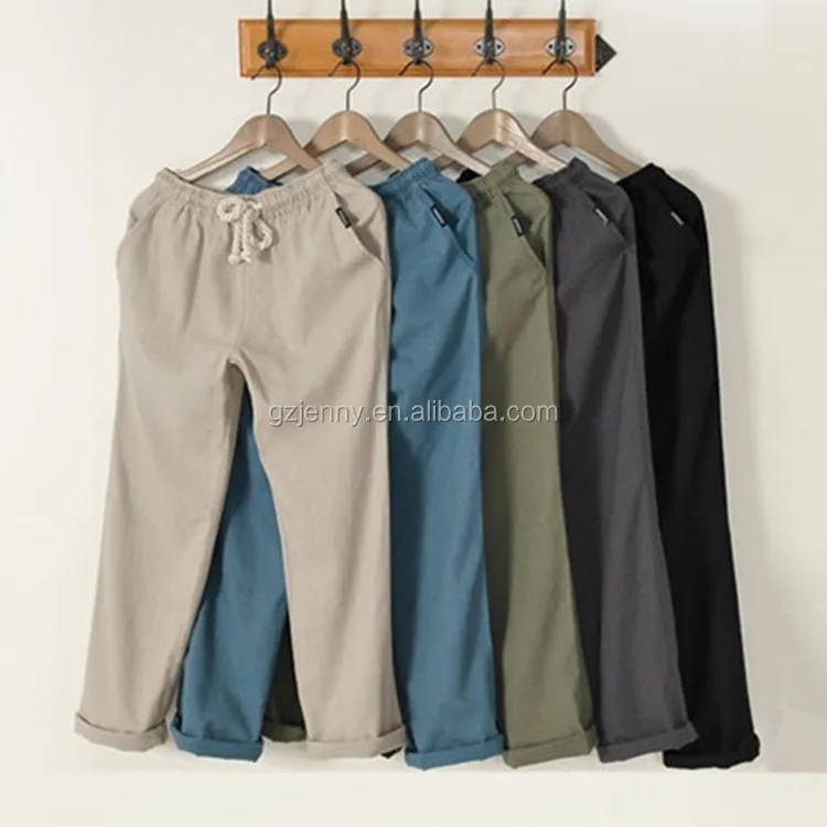 Low MOQ Sample Available Wholesale Man Straight Loose Fit Breathable Linen Pants